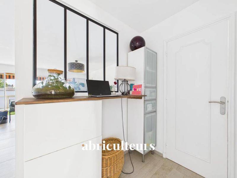 Découvrez une vaste pièce de vie où la circulation est fluide, intégrant une cuisine américaine équipée et ouverte sur une première terrasse de 10 m². Vous apprécierez cet espace pour vos déjeuners au soleil avec une vue dégagée sur la ville et la mer en hiver. Une jolie verrière délimite astucieusement l’entrée, pour créer un coin bureau idéal pour le télétravail.