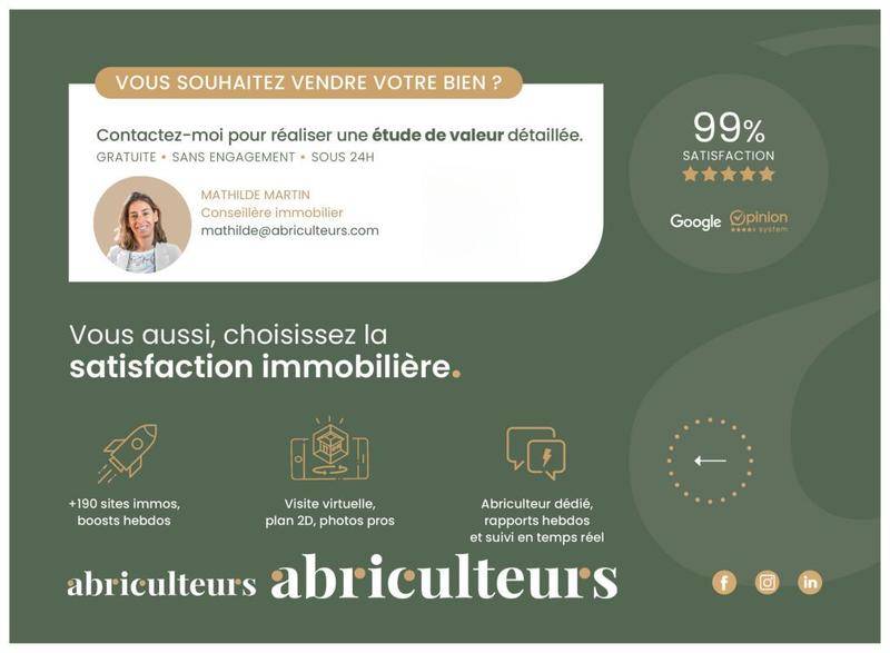 Annonce rédigée sous la responsabilité éditoriale de la SASU Inov’You, immatriculée au RSAC de Nice sous le n° 851 223 610, siège social situé 14 rue Foncet, 06000 Nice, sans détention de fonds, agissant pour le compte de la SARL Abriculteurs Immobilier, immatriculée sous le SIREN n° 837 704 584, titulaire de la carte professionnelle n° CPI 7501 2018 000 025 842, délivrée par la CCI de Paris Île-de-France.
