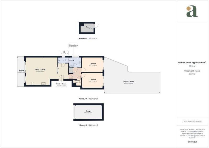 Espace plein air de plus de 60 m² comprenant un jardin privatif et des terrasses.