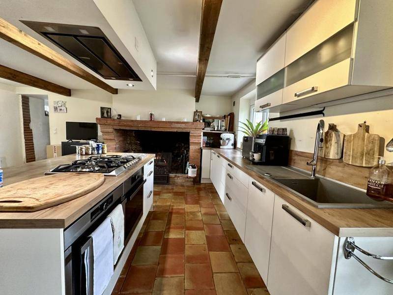 L’habitation principale des propriétaires se distingue par ses volumes et son authenticité. Elle dispose d’une pièce de vie lumineuse de 40 m² et d’une vaste cuisine de type dînatoire équipée d’une cheminée. Le côté nuit propose cinq chambres configurées en suites parentales, dont une située au rez-de-chaussée, garantissant confort et intimité.