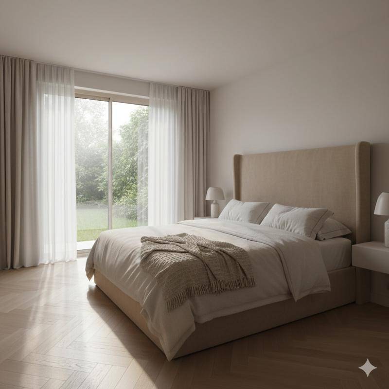 Dès l’entrée, les volumes et la luminosité séduisent immédiatement. Le séjour avec cuisine offre un espace de vie chaleureux et convivial, largement ouvert sur l’extérieur grâce à de grandes baies vitrées. La sensation dedans/dehors est immédiate, apportant une vraie qualité de vie au quotidien.