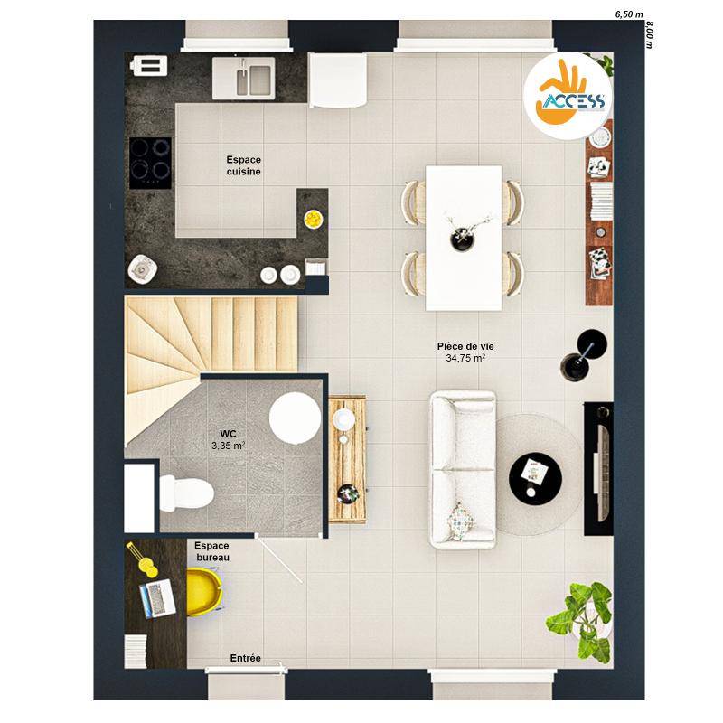 Cette maison de 3 chambres, optimisée sur 74 m², combine confort et praticité pour un accès à la propriété facile, tout en maîtrisant votre budget. Chaque pièce a été pensée pour votre bien-être et celui de votre famille.