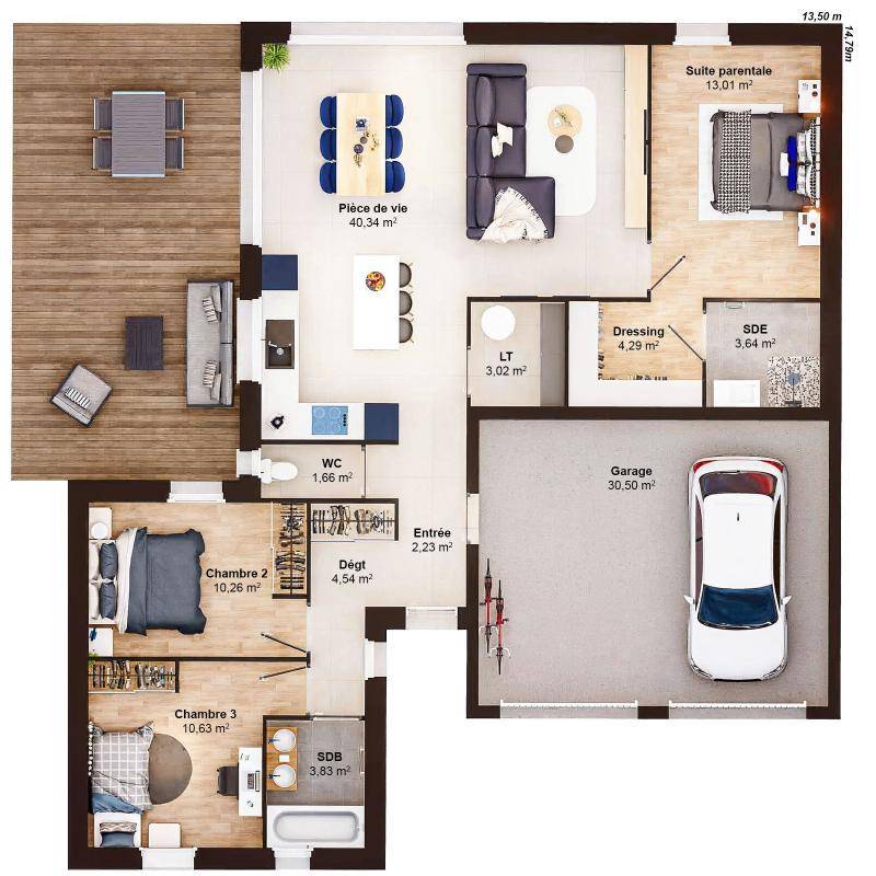 Maison neuve à construire DAHLIA_3CH_80_V1 Cette maison de 3 chambres,…