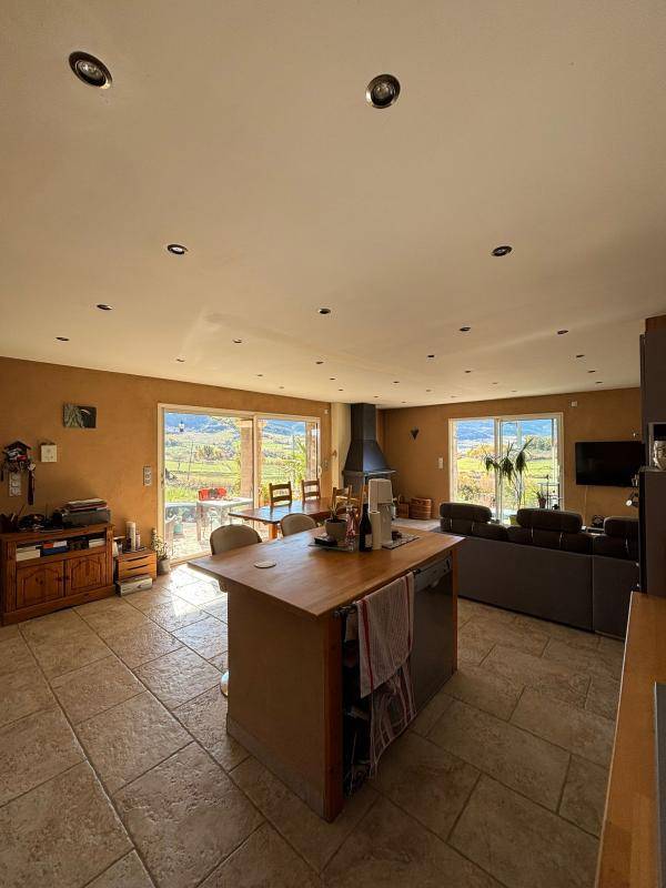 BERNADETTE DELARBRE AGENCE STYL’IMMO BUIS LES BARONNIES vous propose à la vente à Saint Sauveur Gouvernet, au coeur de la Drôme Provençale, cette belle villa récente (2012/2013 où seul le crépi de façade reste à terminer) composée d’une habitation et d’un gîte indépendant, d’une surface totale d’environ 141 m² sur un terrain de 800 m². La maison de plain-pied, bénéficie d’un très bon agencement des pièces avec de belles ouvertures offrant une qualité de vie indéniable. Elle est agencée de la façon suivante : cuisine américaine ouverte sur la salle à manger, très conviviale pour les repas en famille ou entre amis, avec accès direct sur la terrasse couverte, et le salon (42 m²) avec poêle à bois, Un cellier/buanderie, un wc, une salle d’eau avec une belle douche italienne, 4 Chambres (10.57, 10.43,et 9.87 m²) dont une parentale (11 m²) avec son dressing (2.80 m²) sa salle d’eau/wc privatifs (5.80 m²). Le gite d’une surface d’environ 25 m² est composé d’une pièce à vivre (salon salle à manger, kitchenette) une salle d’eau/wc, et une chambre en mezzanine. Les prestations intérieures sont de très belle qualité, (carrelage, double vitrage, isolation en chanvre, travertin au sol, très belle faïence dans les salles d’eau/wc, chauffage au sol avec réglage température pour chaque pièce, placards intégrés dans les chambres). La maison est très bien exposée et de chaque côté on bénéficie d’une vue ouverte sur la vallée et les collines environnantes. La maison possède également un grand vide sanitaire utilisé en atelier/pièces de rangement, Laissez vous séduire par cette belle villa contemporaine et contactez moi pour plus de renseignements ou pour une visite au (Numéro supprimé)