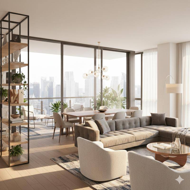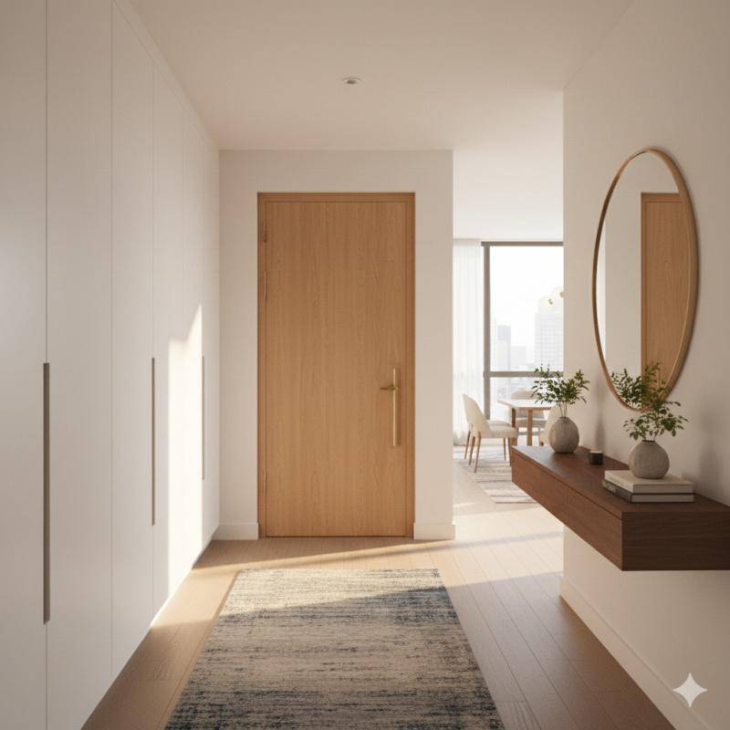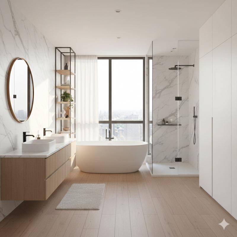 Aucune perte d’espace et de beaux matériaux vous attendent dans ce charmant appartement.
