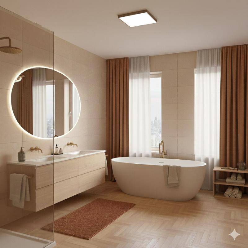 Aucune perte d’espace et de beaux matériaux vous attendent dans ce charmant appartement.