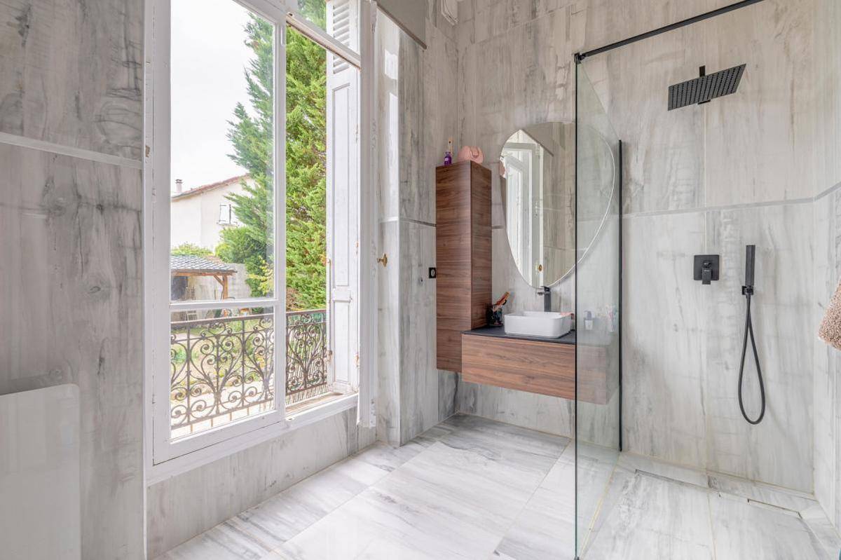 Vous bénéficierez également d’un terrain clos de 1125m2, d’un garage carrelé de 20m2 (entièrement rénové, isolé, faux plafond avec spots, fenêtres, porte, etc…), d’une véranda verrière en fer forgé refaite en pierres de Bourgogne, d’une cour/terrasse de 100m2, d’un chalet de jardin de 10m2, d’un car-port, d’un abri de jardin, de plusieurs places de stationnement, d’une hauteur sous plafond exceptionnelle de 3m85, de prestations soignées et de qualité (parquets massifs en pointe de Hongre, marbre, moulures, miroir/télévision, plafonds suspendus, éclairages led, cuisine, salle d’eau, salle de bain, etc…), et d’arbres fruitiers (noisetiers, figuiers, pommiers, pruniers).