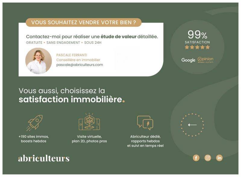 Annonce rédigée sous la responsabilité éditoriale de Mme Pascale FERRANTI , agent commercial (EI), immatriculé au RSAC de PARIS sous le n° 900 781 139, sans détention de fonds, agissant pour le compte de la SARL Abriculteurs immobilier, au capital de 5 000 €, immatriculée sous le SIREN n° 837 704 584, titulaire de la carte professionnelle n° CPI 7501 2018 000 025 842 délivrée par la CCI de Paris Île-de-France, dont le représentant légal est M. Adrien Piot, ayant son siège social au 12 rue des Halles, 75001 Paris.