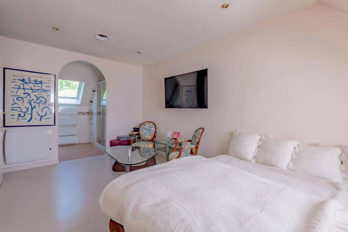 Vous bénéficierez également d’un terrain de 259m2 bien entretenu et sans aucun vis-à-vis, d’une terrasse carrelée de 50m2, d’un garage (transformé en buanderie), d’un accès à un parc privatif de la résidence avec accès direct aux bords de Seine, d’une cheminée avec insert, d’un abri à bois, d’un système de chauffage par pompe à chaleur air air avec climatisation réversible à l’étage (grilles et bouches d’aération), de la domotique, d’une alarme, de la fibre optique, d’un visiophone, de volets roulants électriques, et de prestations de qualité (porte à galandage, plafond avec toile tendue laquée), etc.