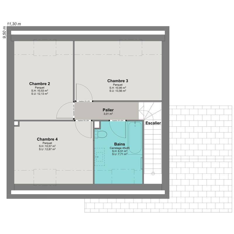 Cette maison de 4 chambres offre une superficie initiale de 97 m2 habitable avant agrandissement. Elle propose une pièce de vie de 34 m2 évolutive selon vos besoins et vos souhaits.