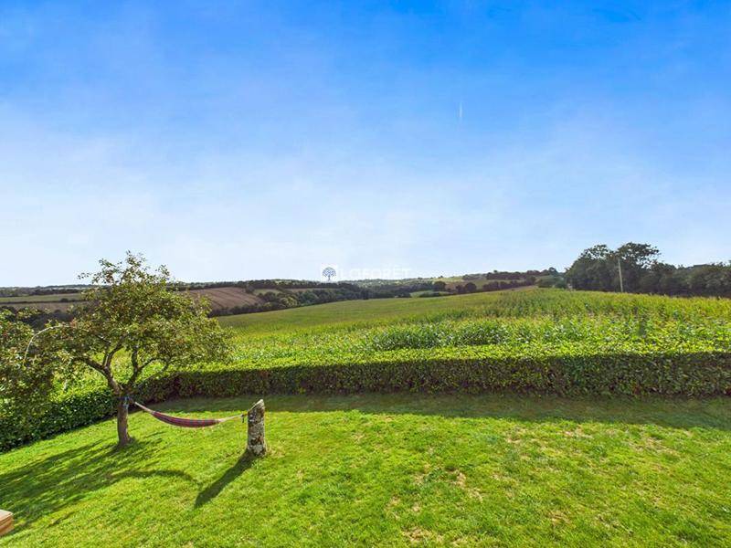 Au rez-de-chaussée : une pièce de vie lumineuse, une cuisine donnant accès à la terrasse offrant une vue dégagée sur la campagne, une chambre et une salle d’eau avec WC.