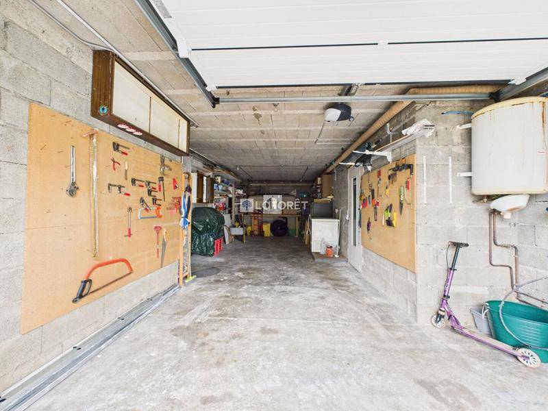 Un grand garage double avec espace de rangement