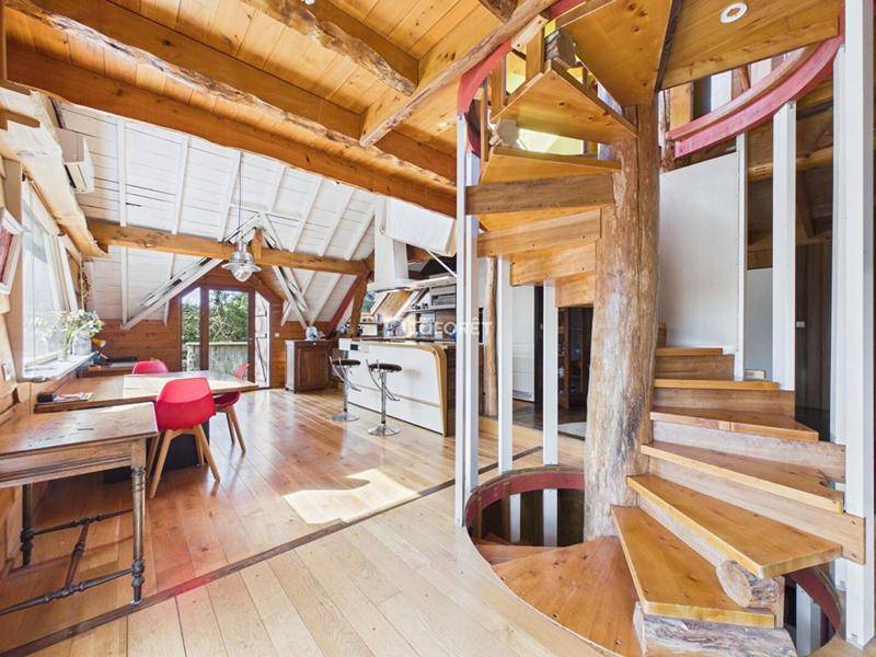 Au rez-de-chaussée : Une entrée, une salle d’eau avec WC, une buanderie, une chaufferie, un atelier, une salle d’exposition. Au premier étage :un palier, un salon / séjour lumineux avec cuisine équipée, donnant accès à une terrasse, une salle de bains avec WC, une chambre, un grenier.Une passerelle mène à un bureau. Au deuxième étage :Une mezzanine, une chambre, un bureau.A l’extérieur, vous bénéficierez également de plusieurs dépendances : Un grand garage faisant office d’atelier, un cabanon, un appentis.