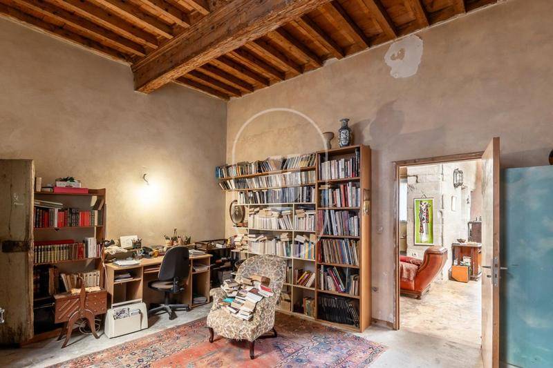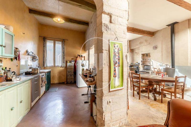 Cette propriété à vendre à Aramon séduira les amateurs de vieilles pierres grâce à ses éléments authentiques et à son caractère unique.