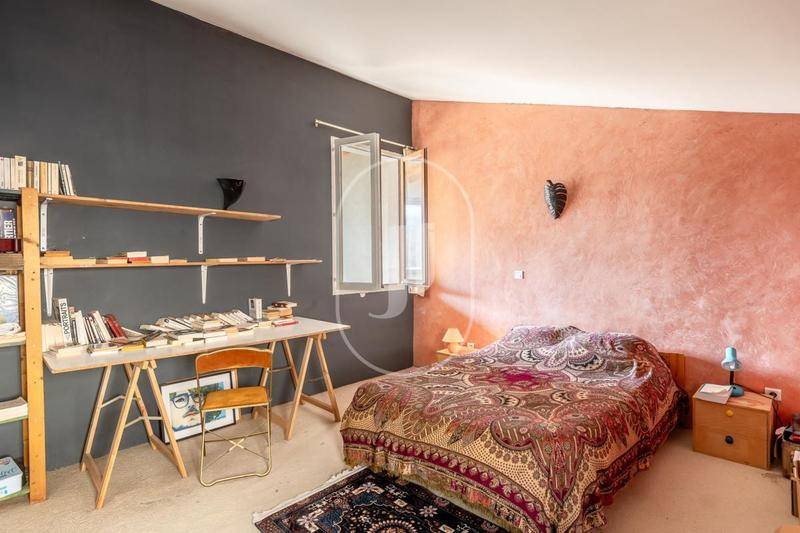 Un escalier en bois sur mesure mène au deuxième étage. Une belle pièce d’accueil permet d’accéder à une terrasse exposée plein sud, offrant un vaste espace extérieur de 32 m² pour profiter pleinement du soleil et du cadre exceptionnel. Elle dessert également deux chambres supplémentaires, dont l’une bénéficie d’une petite terrasse privative, idéale pour un moment de détente.