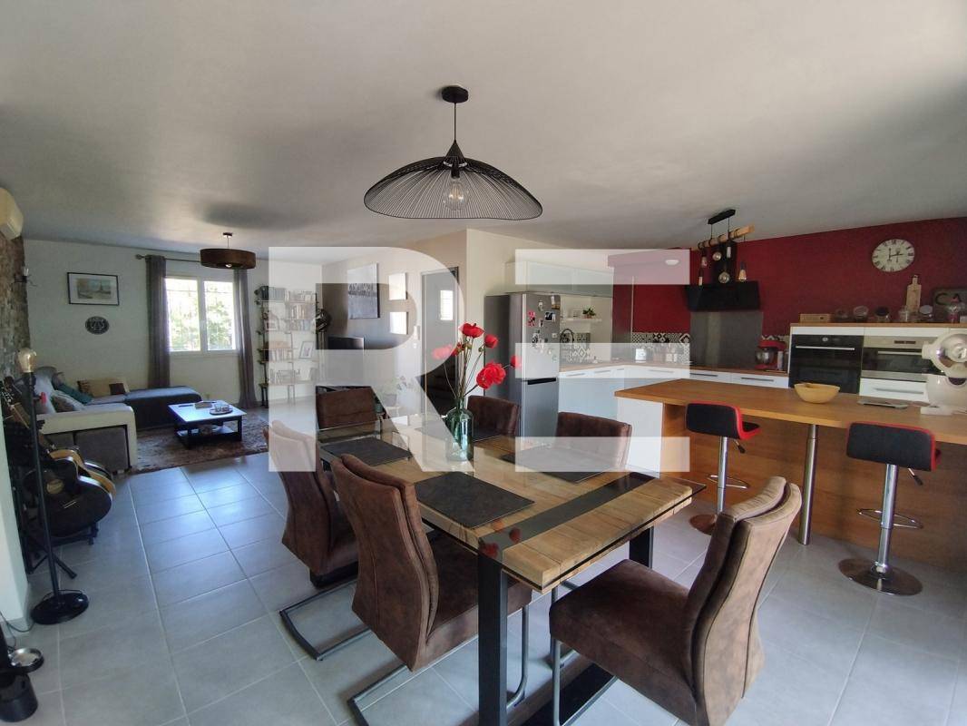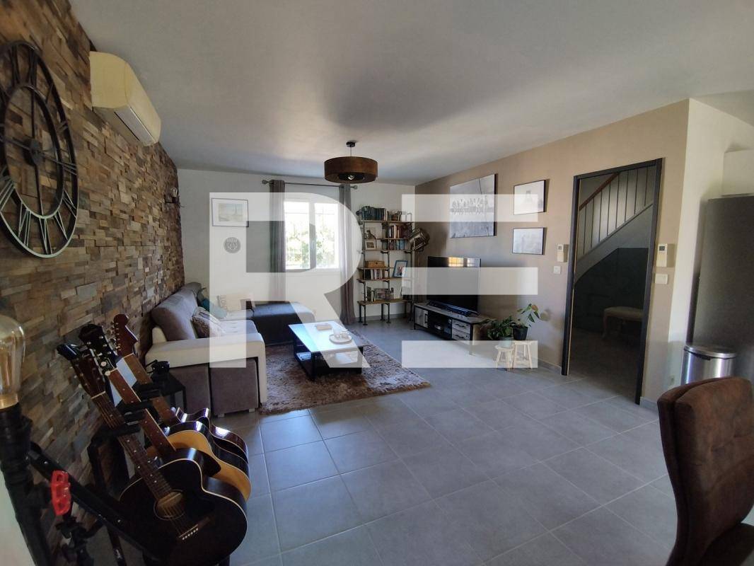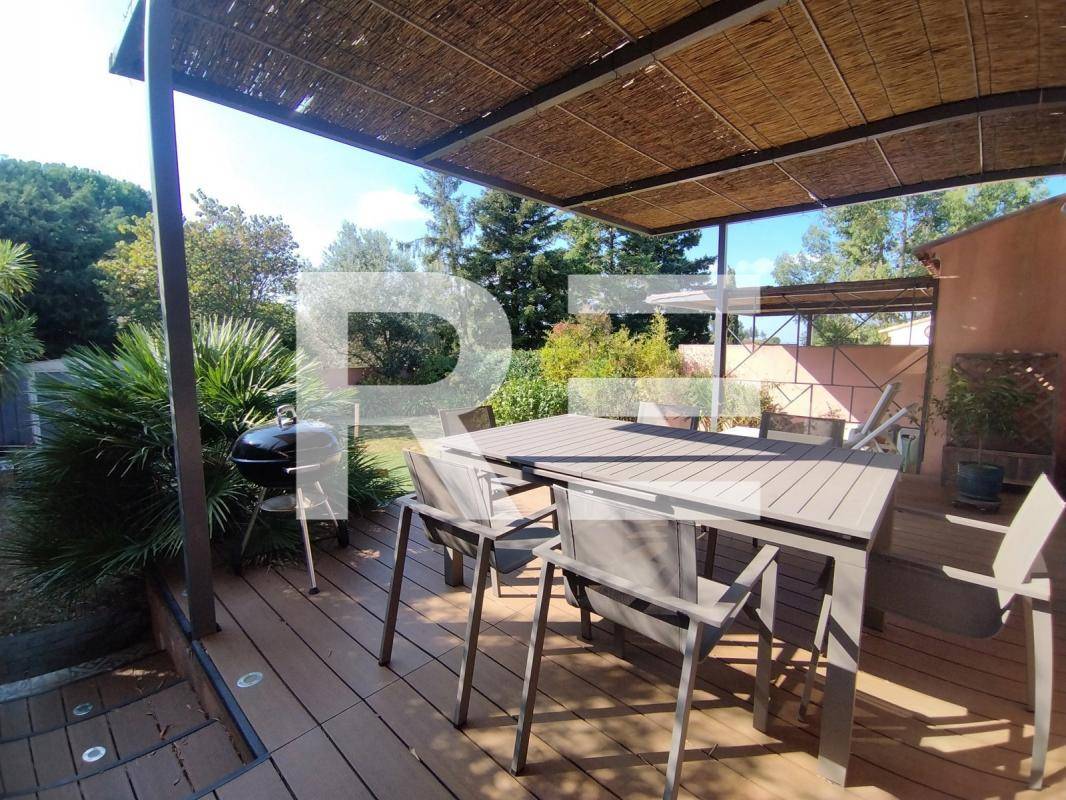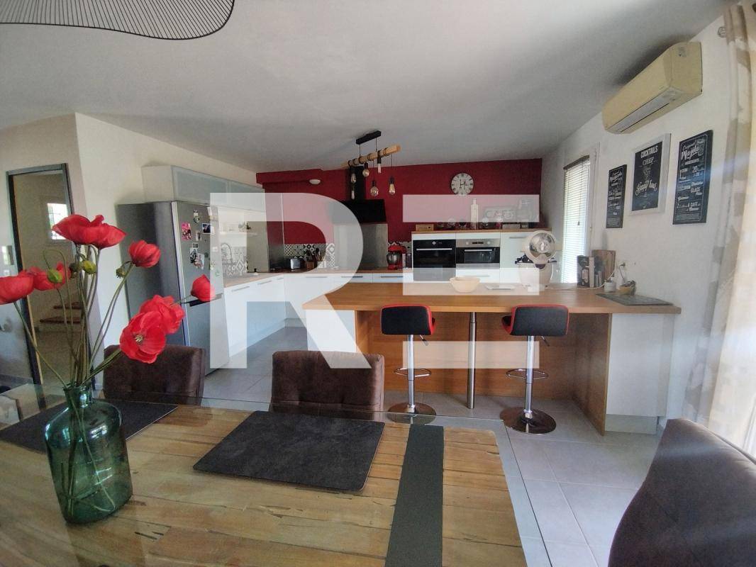 Cette maison en R+1 de 108 m² habitable construite en 2011, se compose d’une cuisine équipée et aménagée ouverte sur un séjour lumineux de 48 M2 donnant sur un terrasse de 40 m² avec une pergola.
