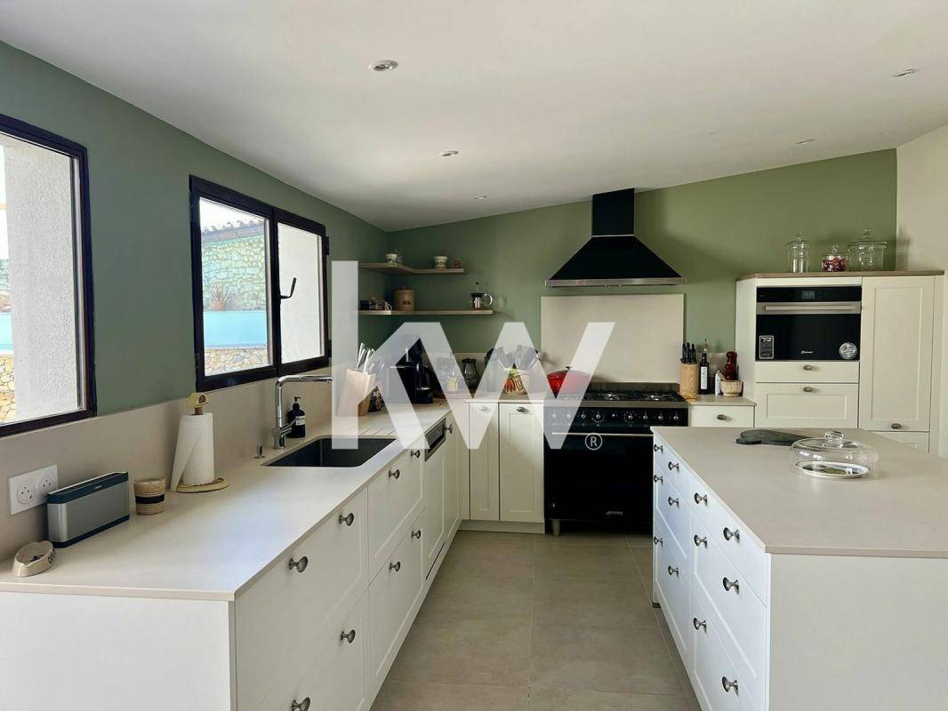 La propriété bénéficie d’un jardin récemment repensé avec des essences méditerranéennes, des bordures en corten apportant une touche contemporaine à l’ensemble. Vue dégagée sur les collines, piscine 10x4m, nombreux espaces extérieurs aménagés et plusieurs annexes (abri piscine, local technique, chaufferie, buanderie,WC extérieur etc.).