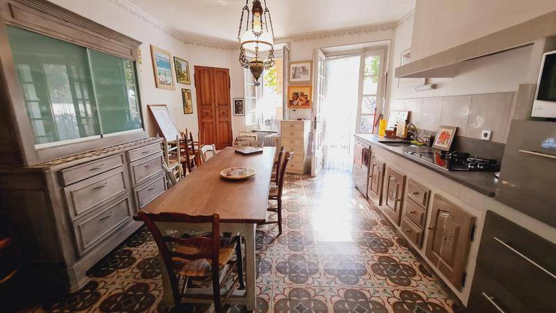 Elle a su préserver tout le charme de l’ancien : tomettes, carreaux de ciment, ferronneries, poutres, volumes généreux et belles hauteurs sous plafond composent une atmosphère chaleureuse et pleine de caractère.