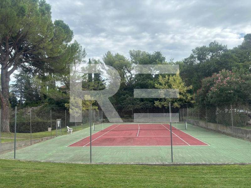 La résidence, calme et arborée, dispose d’un parc paysager avec sa fontaine, d’une piscine et d’un terrain de tennis, offrant un cadre de vie agréable et privilégié.