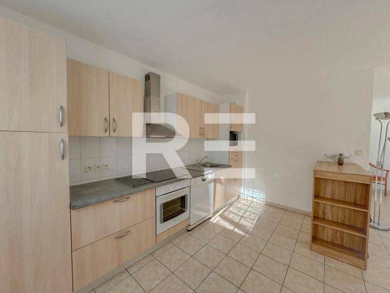 L’appartement, en excellent état, propose une lumineuse pièce de vie climatisée, avec cuisine ouverte, deux chambres, un bureau pouvant faire office de troisième chambre, un cellier ainsi qu’une salle d’eau avec WC.