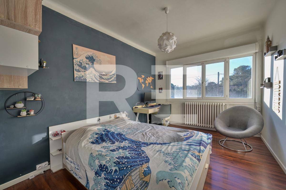 Située dans un secteur résidentiel, à proximité des commerces et des services, cette maison d’architecte des années 60, entièrement rénovée et remise au goût du jour, dispose d’un espace extérieur de plus de 500 m² avec une piscine, deux terrasses, un maset de 17,5m² (idéal pour exercer en libéral) et un chalet en bois de 8m² qui protègea vos meubles de jardin en hiver et vous permettra de loger du monde en été.