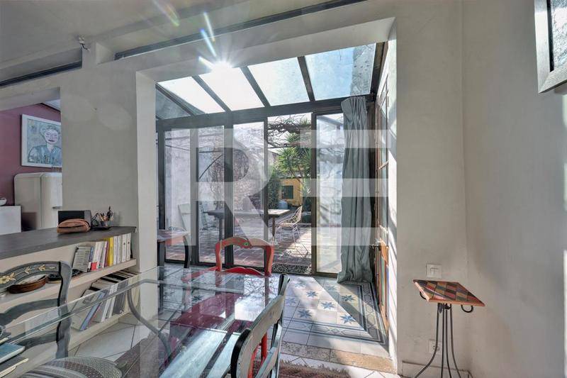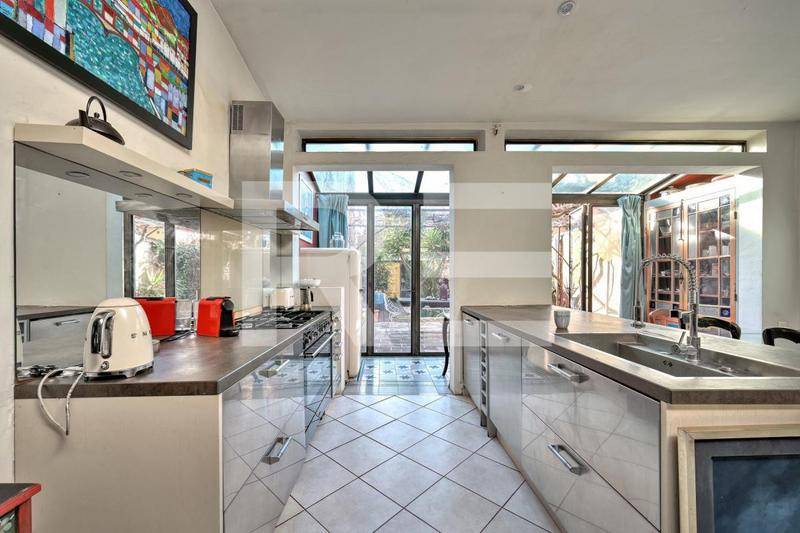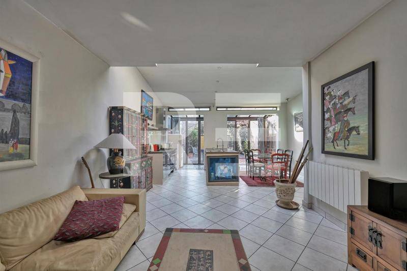 Idéalement située à moins de dix minutes de marche des Galeries Lafayette et des Halles, cette maison d’artiste de 85m² vous séduira par son emplacement prisé et son esprit résolument bohème. On accède à l’intérieur en empruntant un corridor coloré à ciel ouvert pouvant accueillir vélos et deux-roues. L’entrée mène à un séjour spacieux avec cuisine ouverte entièrement équipée. De grandes baies vitrées donnent accès à une terrasse entièrement recouverte de végétation aux beaux jours.