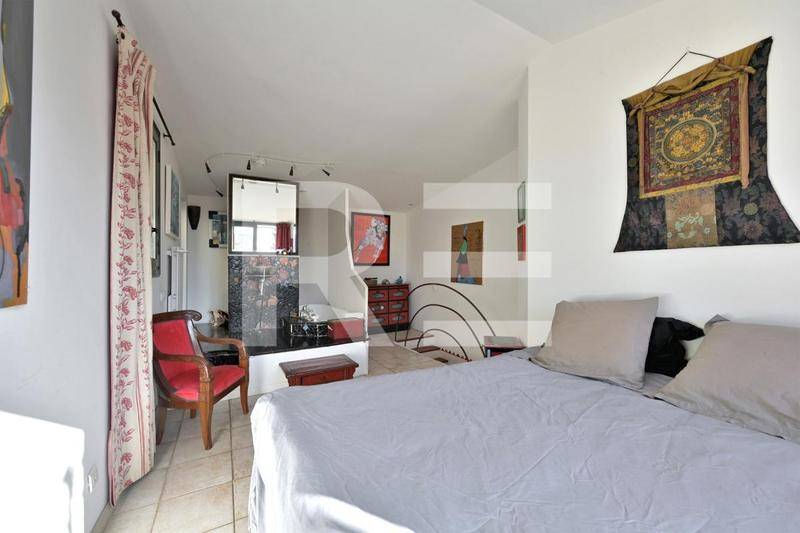 Un escalier mène à un bel espace de 22m² avec chambre, dressing, salle de bains et WC, et donnant sur une tropézienne de 10m² apportant à la pièce lumière naturelle et douceur.