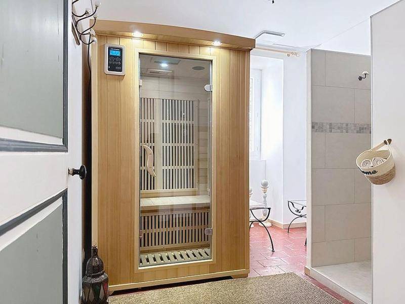 Un espace bien-être complète harmonieusement l’ensemble, comprenant une salle de massage ainsi qu’un sauna situé au deuxième étage, offrant un véritable lieu dédié à la relaxation.