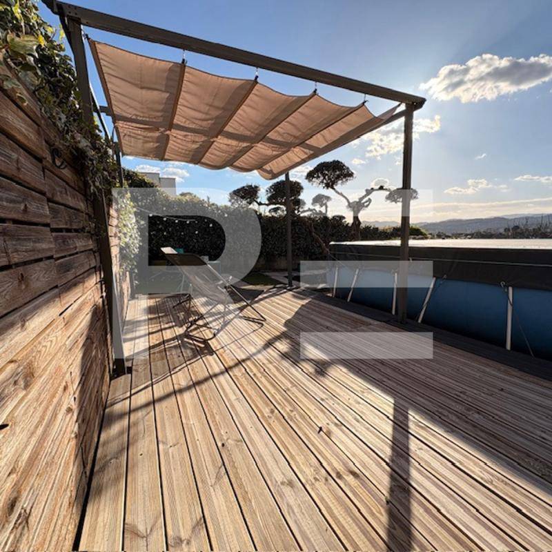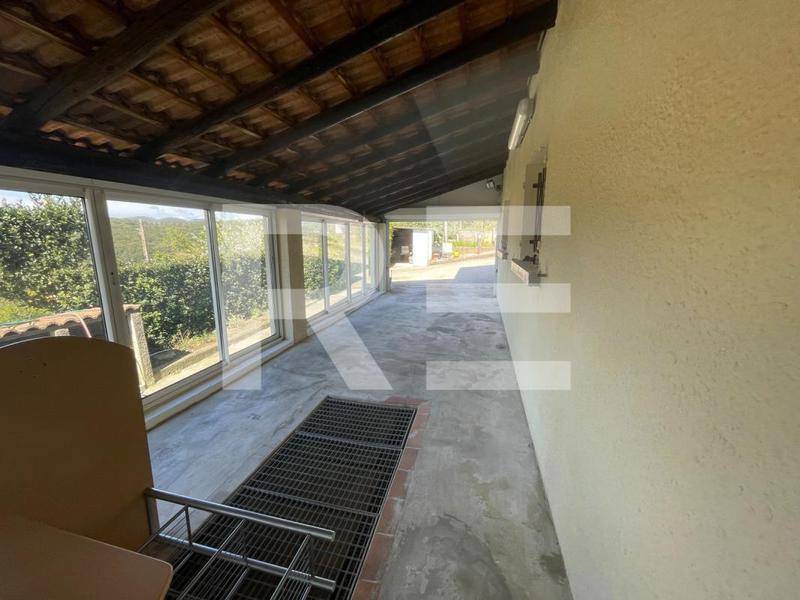 À l’extérieur, la propriété dispose de nombreux atouts : un grand barbecue, une piscine hors-sol (3 x 7 m) chauffée par une pompe à chaleur devant une terrasse aménagée avec une pergola, ainsi qu’une aire de stationnement très importante (8 ou 9 véhicules) et un portail électrique.