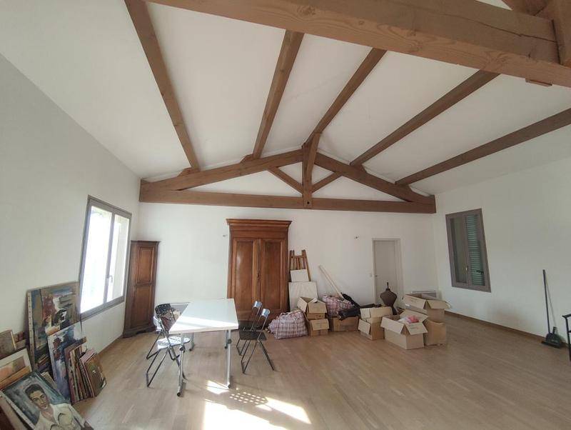 Le chai comprend un appartement T4 rénové en 2011, situé à l’étage et offrant 132 m² habitables, désormais libre de location. Il était précédemment loué 1 179 €/mois + 200 € de provisions pour charges. L’appartement bénéficie d’une isolation complète, double vitrage, sol et murs rénovés, VMC double flux, avec possibilité d’installer un gainable. Il se compose de :