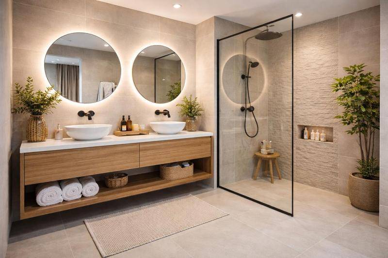 Côté nuit, le confort est roi : une première chambre avec rangements donne directement sur la terrasse, tandis que la seconde profite de l’intimité d’un patio privatif. Une salle d’eau avec double vasque et des toilettes séparées complètent ce bien unique.