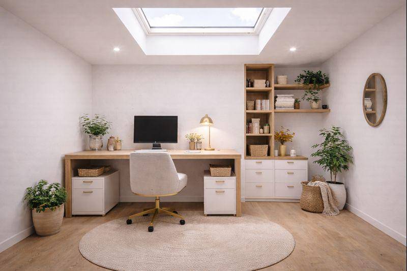 Au rez-de-chaussée, la pièce de vie, particulièrement spacieuse et lumineuse, s’ouvre sur une belle terrasse d’environ 24 m², véritable atout pour profiter de l’extérieur au quotidien.
