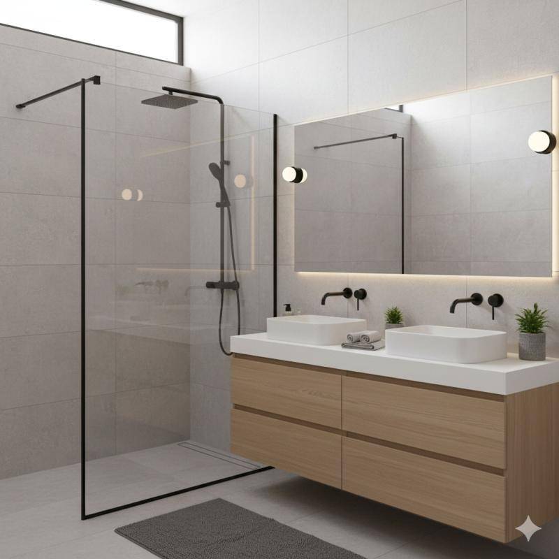 Salles de bain équipées de WC suspendus avec réservoir encastré.