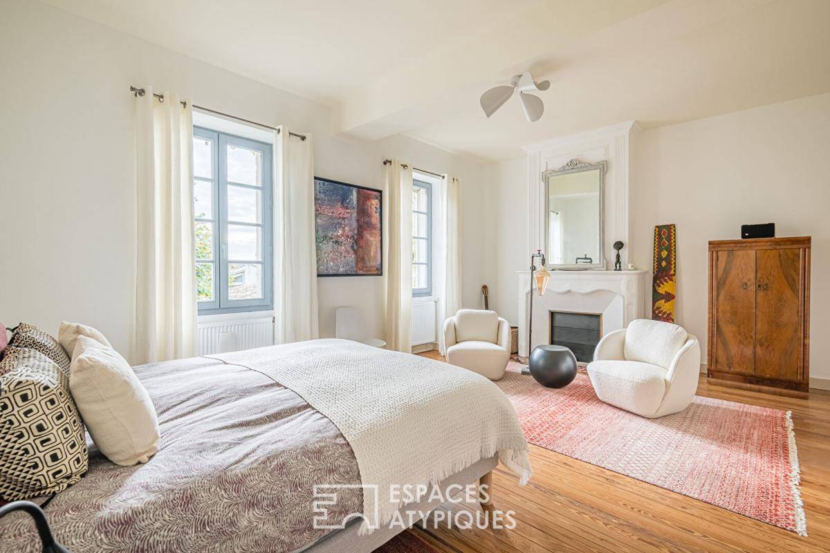 Les espaces intérieurs révèlent une rénovation soignée ayant préservé l’âme de la bâtisse. Les matériaux d’origine cohabitent avec un confort contemporain, donnant à chaque pièce une atmosphère chaleureuse. La maison se compose de volumes généreux où se succèdent salons, salle à manger, salle bistrot et cuisine conviviale, distribués de manière fluide avec différents accès sur le jardin. Les chambres, lumineuses et calmes, au nombre de cinq à l’étage et une au rez-de-chaussée renforcent la sensation de tranquillité. L’ensemble se prête aisément à une activité de chambres d’hôtes grâce à la configuration fonctionnelle et à l’accueil qu’inspirent les lieux.