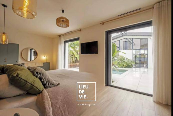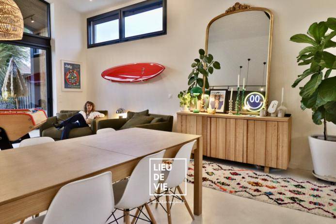 Ce vaste loft s’articule autour de deux ambiances différentes comme dans un voyage immobile: un patio avec bassin Balinais et un joli jardin de 90 m² d’esprit Cap Ferret avec cuisine extérieure, sans vis à vis pour en parfaire l’exclusivité.