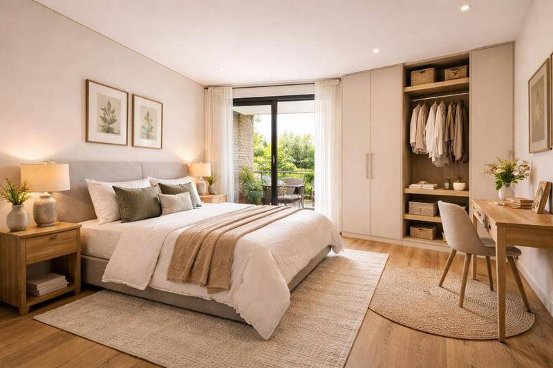 Côté nuit optimisé : Une chambre parentale spacieuse et une seconde chambre, idéale pour un enfant ou un bureau.