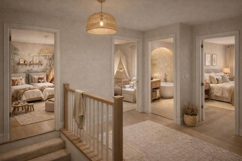 À l’étage, trois chambres confortables vous offrent un véritable espace nuit, idéal pour une famille.