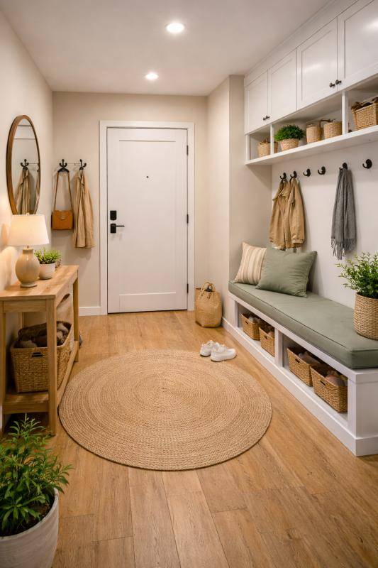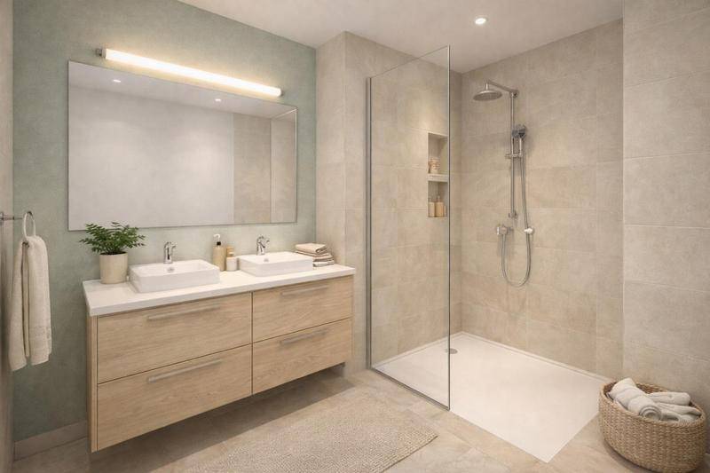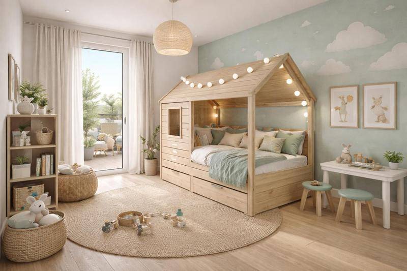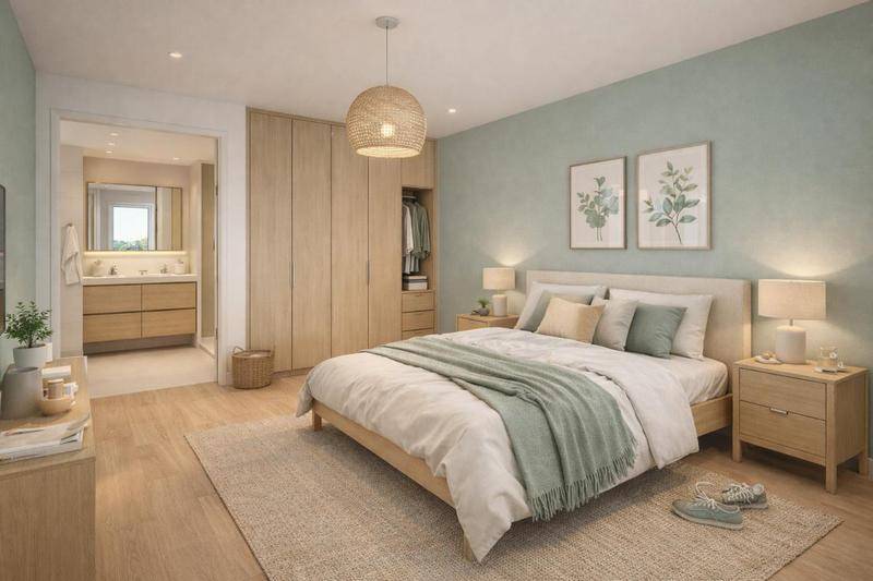Il se compose d’un séjour avec cuisine ouverte, offrant un espace convivial et facile à aménager. La présence de placards intégrés et de rangements optimisés apporte praticité au quotidien.
