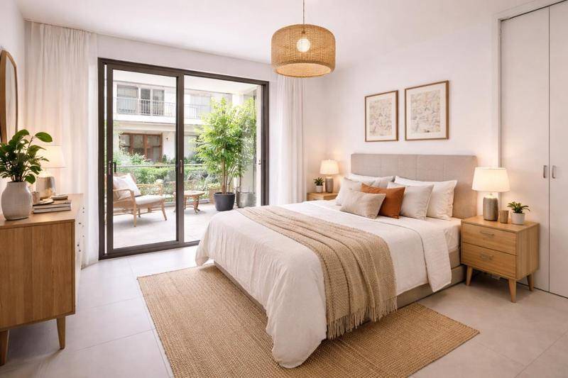 Le séjour, très lumineux grâce à sa belle bain vitrée, avec cuisine ouverte, donne sur le patio intérieur de la résidence, offrant un cadre agréable et calme. Un balcon couvert prolonge l’espace de vie jusqu’à la chambre, qui dispose d’une porte-fenêtre et d’un grand placard intégré.