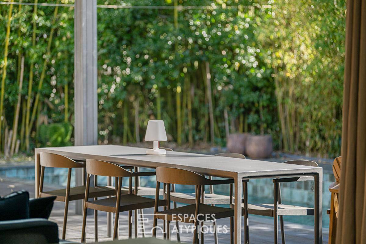 Située au coeur de Talence, dans un environnement calme et privilégié en seconde ligne, cette maison contemporaine d’environ 190 m², implantée sur une parcelle de 600 m², est une véritable invitation à la sérénité. Son architecture élégante, en parfaite harmonie avec la végétation environnante, offre un cadre de vie à la fois fonctionnel, lumineux et chaleureux.