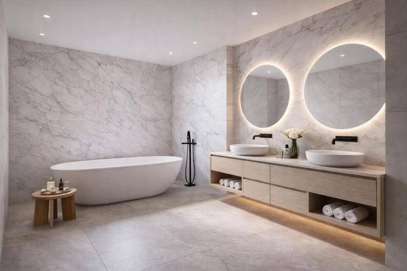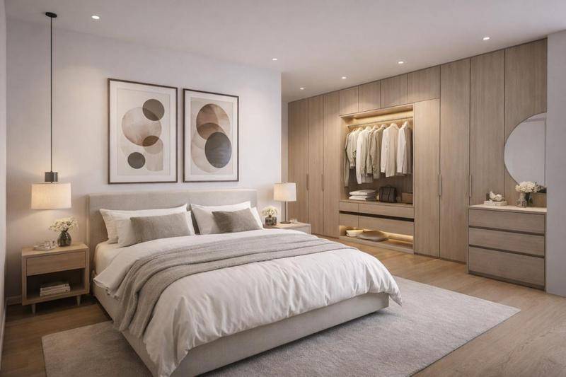 Le coin nuit, bien distinct, propose deux chambres confortables ainsi qu’une salle de bain raffinée avec double vasque. Une signature contemporaine pour une vie citadine sereine.