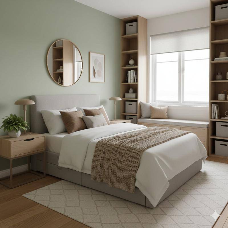 Rangements fonctionnels avec placards intégrés (étagères et penderies) selon les plans.