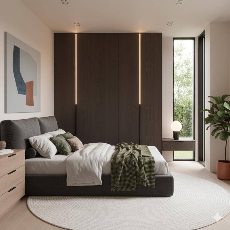 Rangements fonctionnels avec placards intégrés (étagères et penderies) selon les plans.
