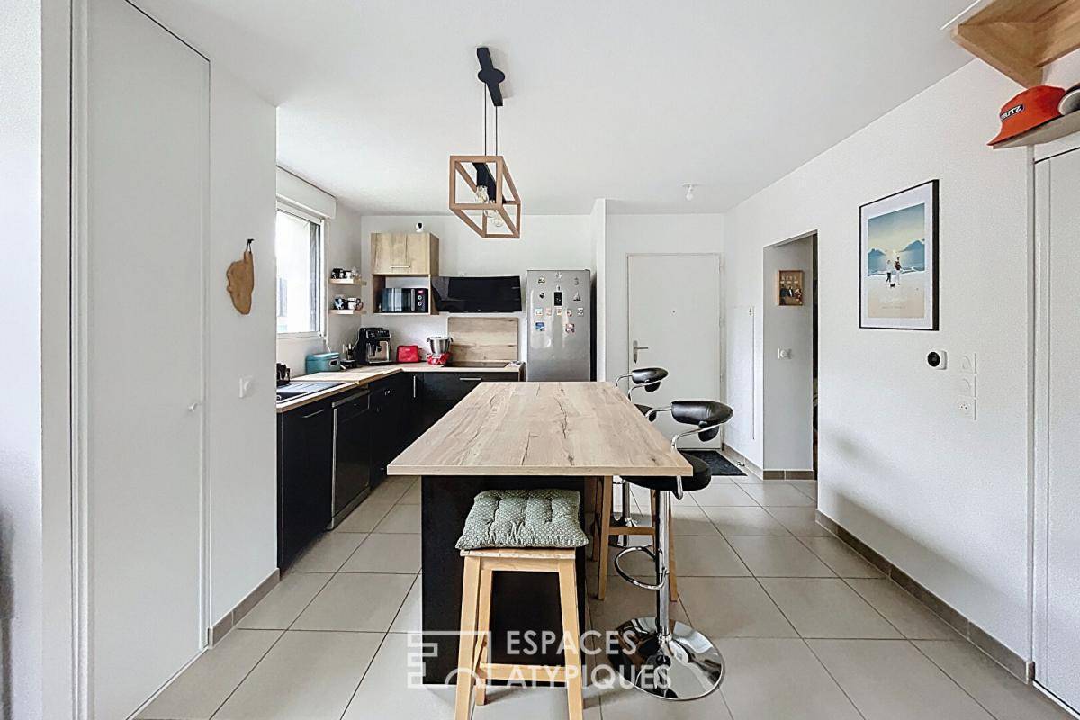 Dès l’entrée, la pièce de vie séduit par sa décoration soignée et sa belle luminosité. Une cuisine moderne, entièrement équipée, s’ouvre sur le séjour et la salle à manger. Prolongée par une terrasse, cette pièce invite naturellement à profiter des beaux jours. Un cellier pratique et un toilette complètent ce niveau.