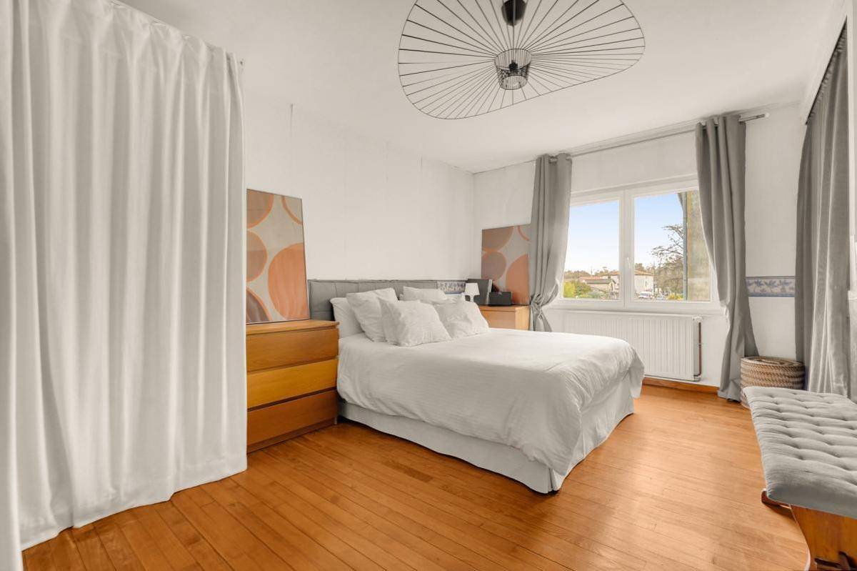 Elle se compose de 4 chambres, de 2 salles d’eau, dont une avec une pièce attenante pouvant faire office de salon, espace idéal pour un adolescent, un coin indépendant ou du télétravail.