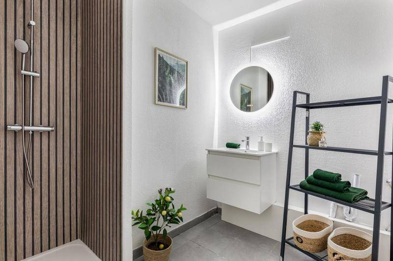 L’espace nuit se compose de deux chambres confortables, d’une salle d’eau contemporaine et de rangements optimisés.