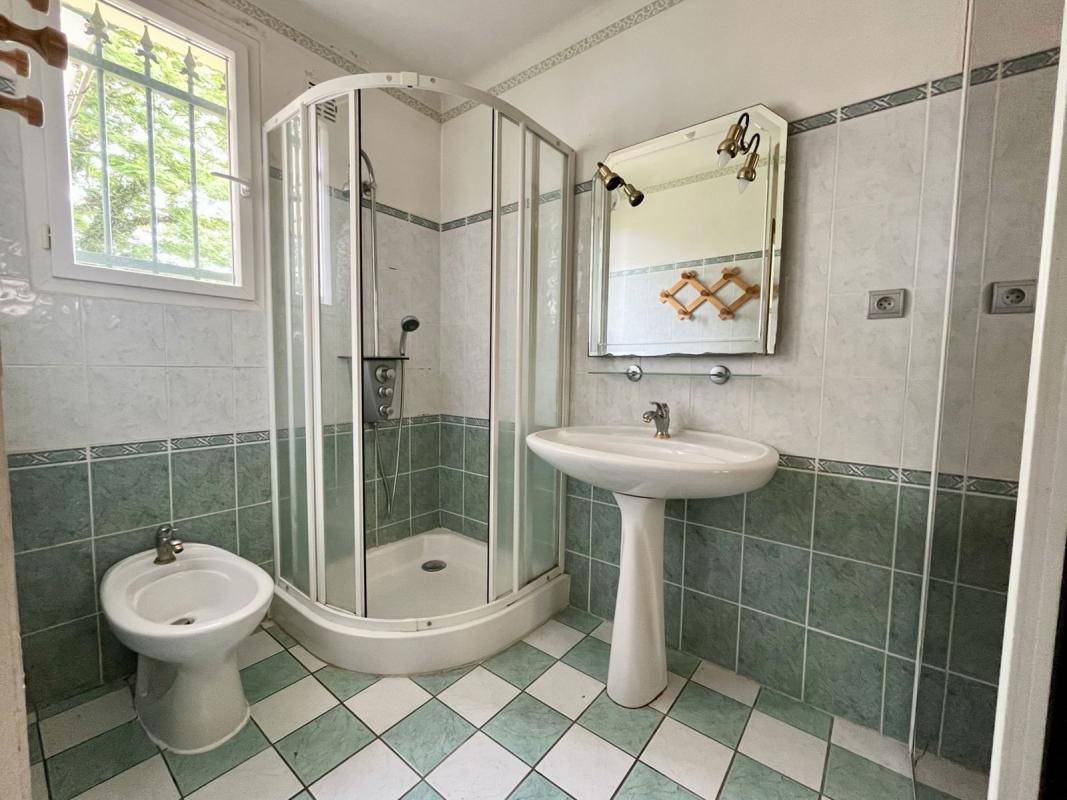 Puis au rez-de-chaussée un dégagement distribue un second salon, deux autres chambres avec placards, une salle de bains et un second WC.