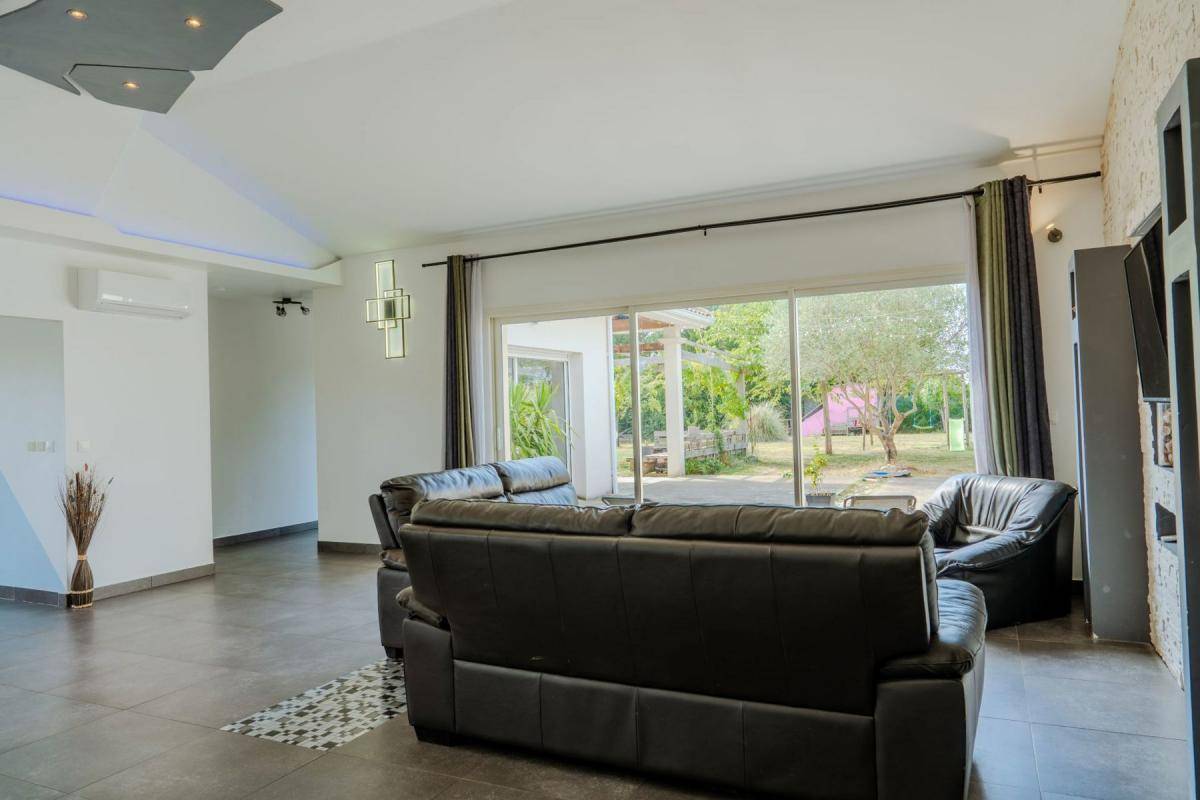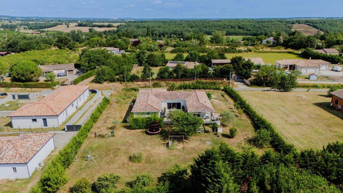 Prestations haut de gamme, calme et volume généreux et si c’était elle votre future maison ? Située dans un environnement calme et verdoyant à St-Cézert à 8 min de Grenade, cette superbe villa moderne de plain-pied, construite en 2015, séduit par son design en U, sa luminosité naturelle, ses volumes et ses prestations. Des espaces de vie spacieux et lumineux : La maison s’organise autour d’un vaste séjour de 60 m² avec une grande baie vitrée de 4,5m ouvrant sur la terrasse centrale. La cuisine aménagée et équipée de 20 m² avec son grand ilot central, dispose d’un accès direct à un cellier/ buanderie fonctionnelle de 15 m². Une pièce supplémentaire attenante à l’espace de vie, avec entrée indépendante et connexions TV/Internet offre de multiples usages : salle de jeux, bureau ou espace professionnel. Côté nuit : Quatre chambres toutes avec placards, dont une suite parentale de 30 m² avec dressing, salle d’eau privative, espace bureau/ salle de sport avec accès à la terrasse. Une salle de bain familiale avec douche et baignoire ainsi que deux WC complètent le tout. Prestations et confort haut de gamme : • Chauffage au sol via pompe à chaleur Daikin • Climatisation réversible dans chaque pièce • VMC double flux assurant un renouvellement d’air constant et sain • Filtration d’eau Culligan neuve : pour de l’eau pure dans toute la maison • Menuiseries aluminium avec oscillo-battants • Volets roulants électriques, portails motorisés Somfy, visiophone • Connexion fibre • Classe énergie A : gage d’une consommation minimale et d’un confort thermique optimal toute l’année. Un extérieur idyllique et fonctionnel : Le terrain de 2 500 m², entièrement clôturé, arboré, offre un cadre de vie rare et paisible. Vous y trouverez une cuisine d’été déjà équipée d’un four à pizza en pierre – parfaite pour vos soirées conviviales entre amis ou en famille. Deux terrasses complètent l’ensemble : une de 70 m² à l’abri des regards, et une autre de 16 m² couverte. Le terrain est piscinable, avec la possibilité d’installer un pool house pour créer un vrai coin de paradis. Arbres fruitiers, oliviers, bananiers et plus de 150 cyprès assurent intimité et verdure toute l’année. (une partie est divisible et constructible) Un garage en sous-sol complet et polyvalent : La maison repose sur un sous-sol de 170 m² avec eau et électricité. 80 m² sont aménagés en garage avec prise renforcée pour véhicule électrique. Le reste peut accueillir un atelier, des rangements ou un aménagement supplémentaire. Emplacement idéal : À seulement 280 mètres : école, marché, bibliothèque, city stade, arrêt de bus scolaire. En voiture : • Grenade-sur-Garonne à 8 minutes • Gare SNCF à 14 km • Airbus Blagnac à 29 km • Toulouse centre à 35 km Un bien rare, clé en main, alliant volumes, modernité, économies d’énergie et cadre de vie serein. Une opportunité à ne pas manquer. Je vous attends pour la visite.