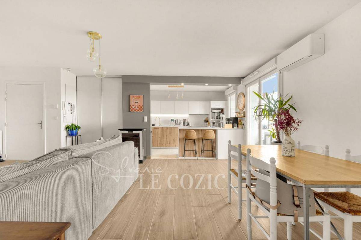 Vous apprécierez son séjour-cuisine spacieux de 39 m², baigné de lumière grâce à sa double exposition Sud et Ouest.