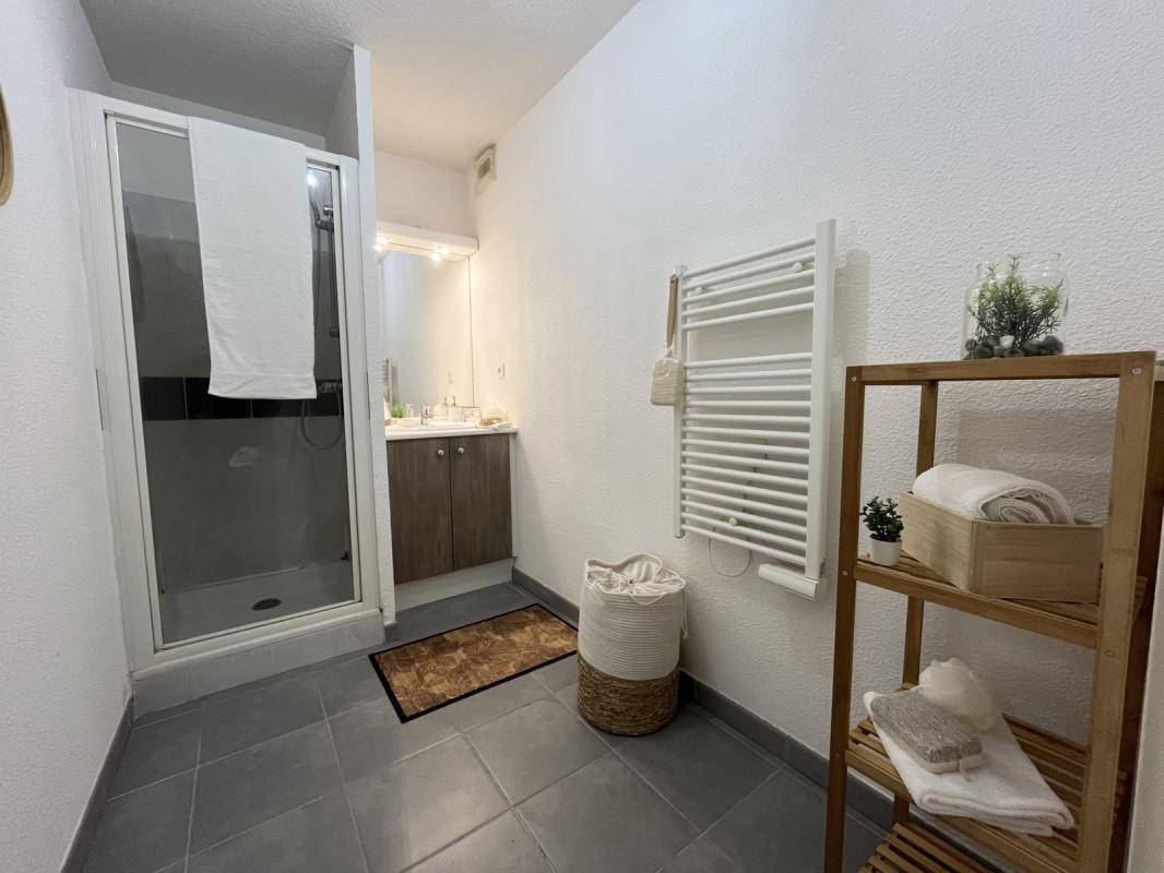Pour la partie nuit, vous disposerez d’une grande chambre avec placards de 13m2, d’une salle. d’eau avec douche et d’un WC séparé.